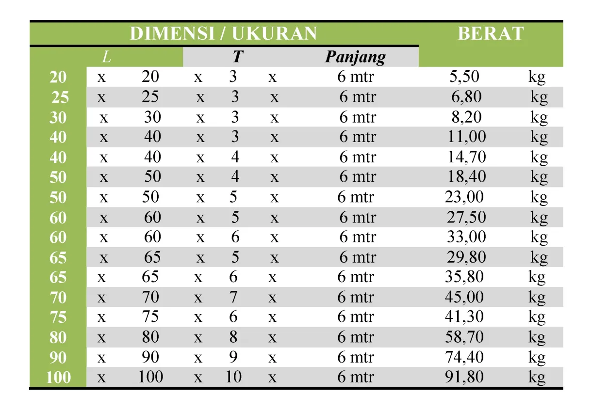 Sesuaikan dengan Kebutuhan : Pilih ukuran dan ketebalan besi siku sesuai dengan aplikasi yang direncanakan.